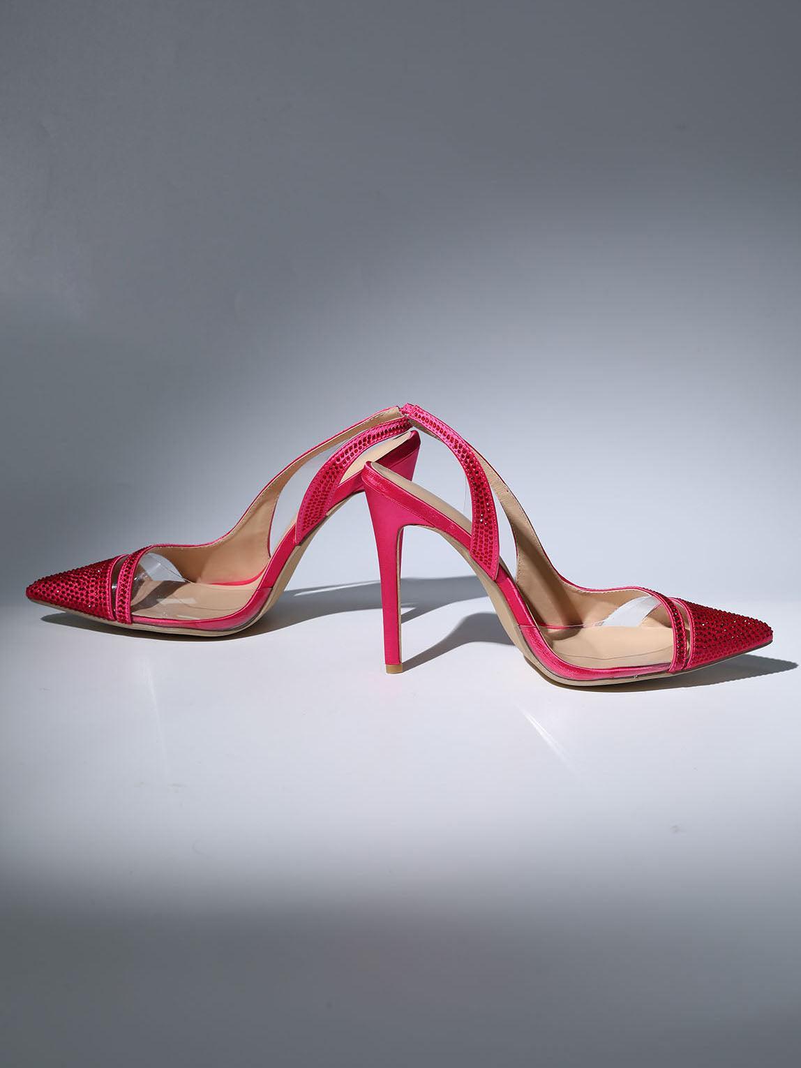 The Medusa Crystal Heels In Hot Pink feature a delicate crystal detailing that adds a spark of elegance and beauty. The luxe look is perfect for a night out and the comfortable padding ensures a comfortable fit.