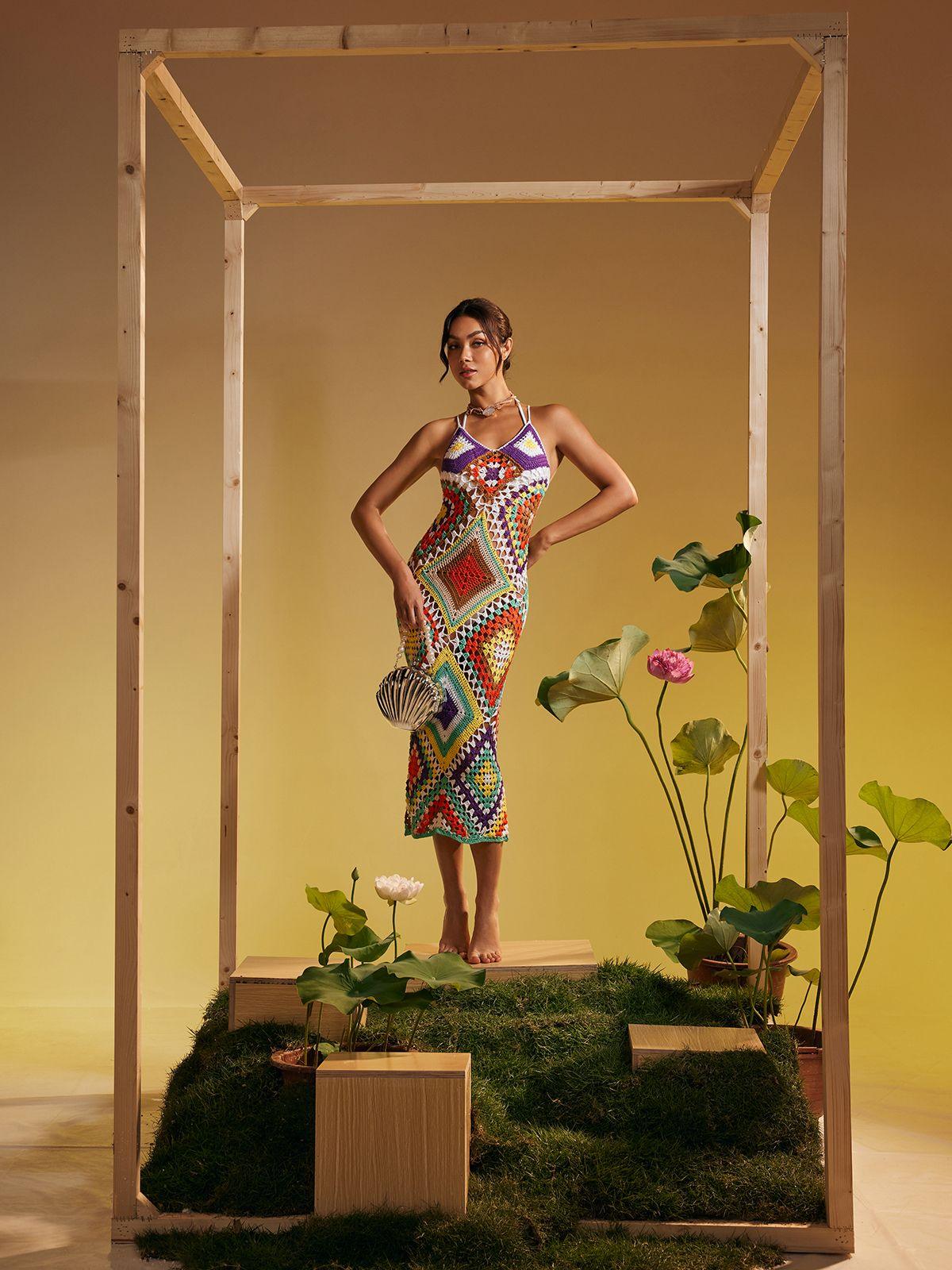 Indulge in effortless elegance with the Monroe Spaghetti Patchwork Hollow Knitted Dress. Made with soft, lightweight fabric, this dress features a unique patchwork design and a flattering spaghetti strap silhouette. Perfect for any occasion, this dress will make you feel confident and stylish.