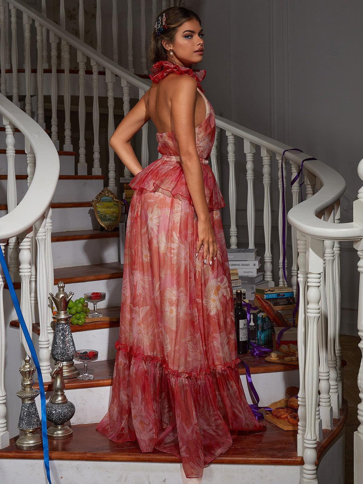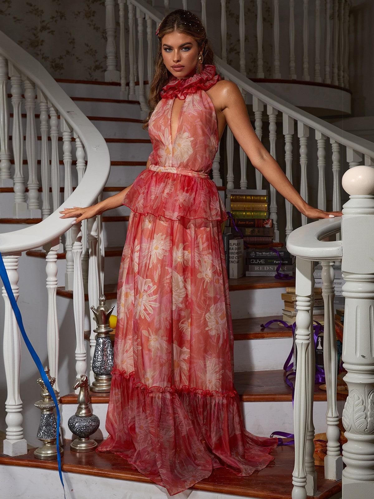 Indulge in your love for bohemian fashion with the Pollux Halterneck Floral Maxi Dress. Featuring a breezy halterneck design and a vibrant floral print, this dress will make you feel effortlessly chic and free-spirited. Perfect for any summertime event or vacation, you'll be the center of attention in this stunning dress!